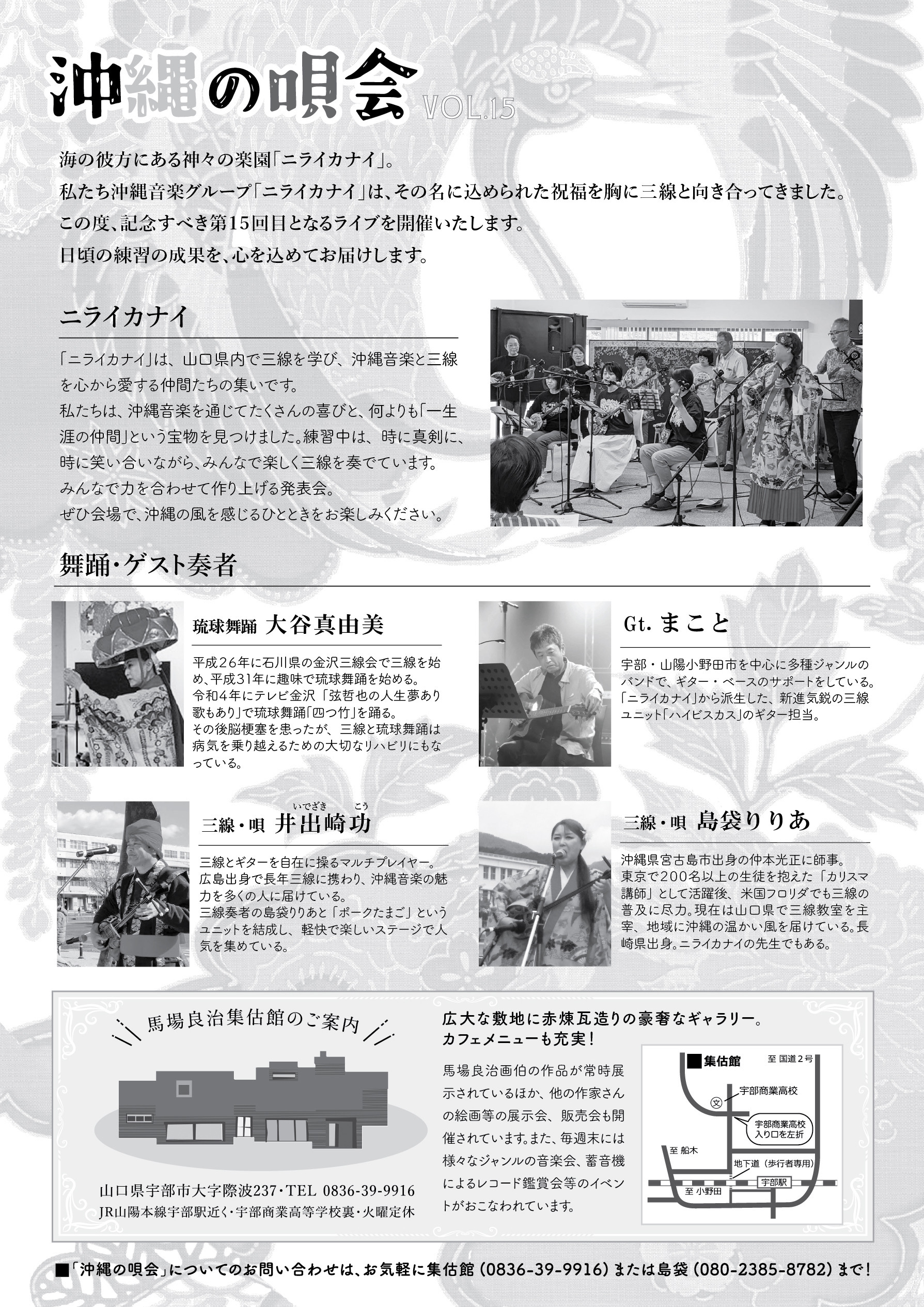 今回も、ゲスト奏者としてギタリストのまことさん、そして三線の井出崎功さんが加わってくださいました。