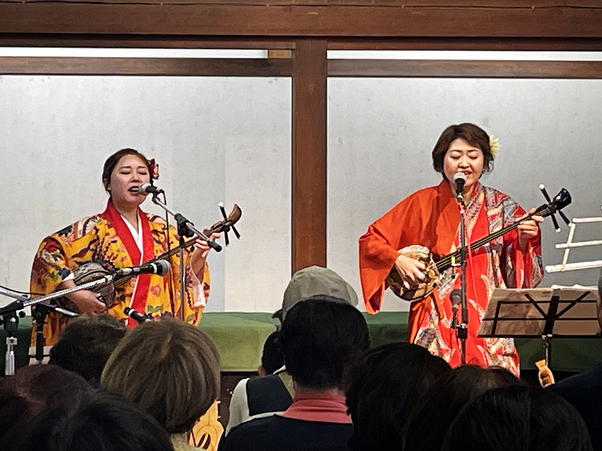 第二部では、宮古・八重山民謡を得意とする松岡さんが「つぃんだら節」で会場を魅了。ニライカナイから派生した女性だけのユニット「ハイビスカス」の演奏では、メンバーである野村さんの明るく華やかな歌声が響き渡りました。